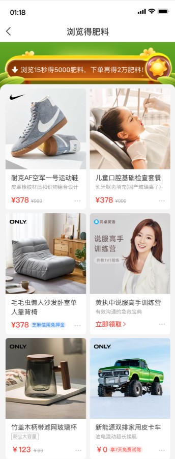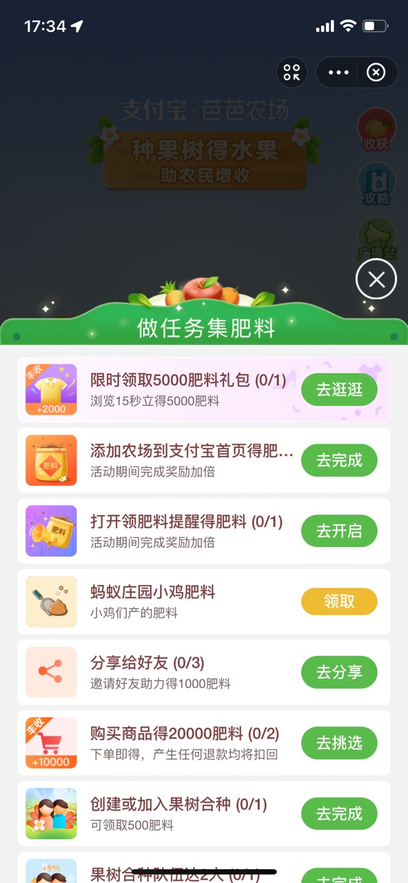 芭芭农场--领肥料(做任务领集肥料)--逛任务(第二位)--芭芭果园商品FEEDS流。