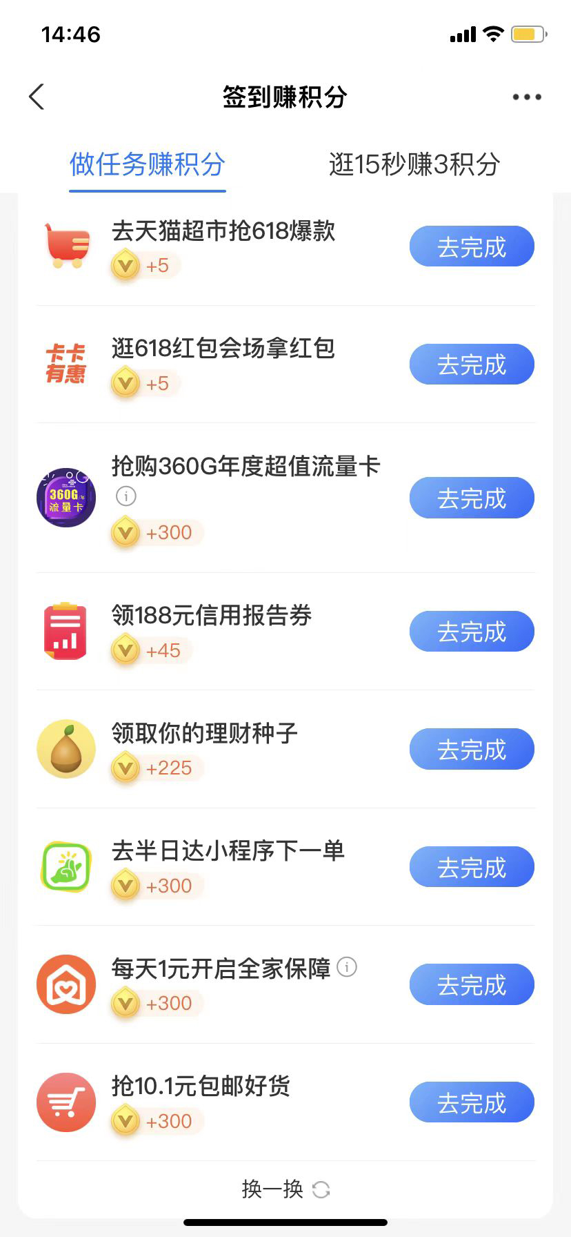 支付宝--“我的”--每日签到--做任务领积分(第3/7坑位)