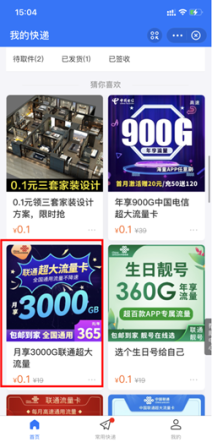 首页-我的快递-屏幕下滑-页面底部(第二排第一个坑位位)